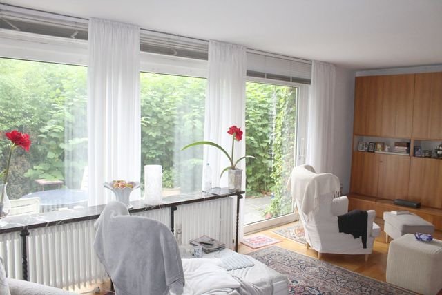 - Etwas in die Jahre gekommenes individuelles Architektenhaus mit großem Raumangebot und viel Grün außenrum.