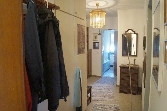 Die attraktive 2-Zimmer-Wohnung befindet sich im 4.OG eines gepflegten Mehrfamilienhauses in einer zentralen Wohnlage in Neumarkt, etwa 32 Kilometer südlich von Nürnberg entfernt. Die gemütliche Eigentumswohnung verteilt sich über ca. 57 m² Wohnfläche und ist sehr gut geschnitten. Über den Flur sind alle Räume schnell und bequem zu erreichen.