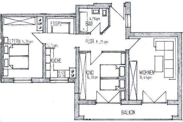Baujahr Gebäude ca. 1983 3 Zimmer, Küche, Bad, Garderobe, Balkon
