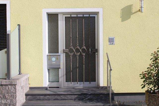 Innentüren Holz (Farbe braun), teilweise auch Glastüren